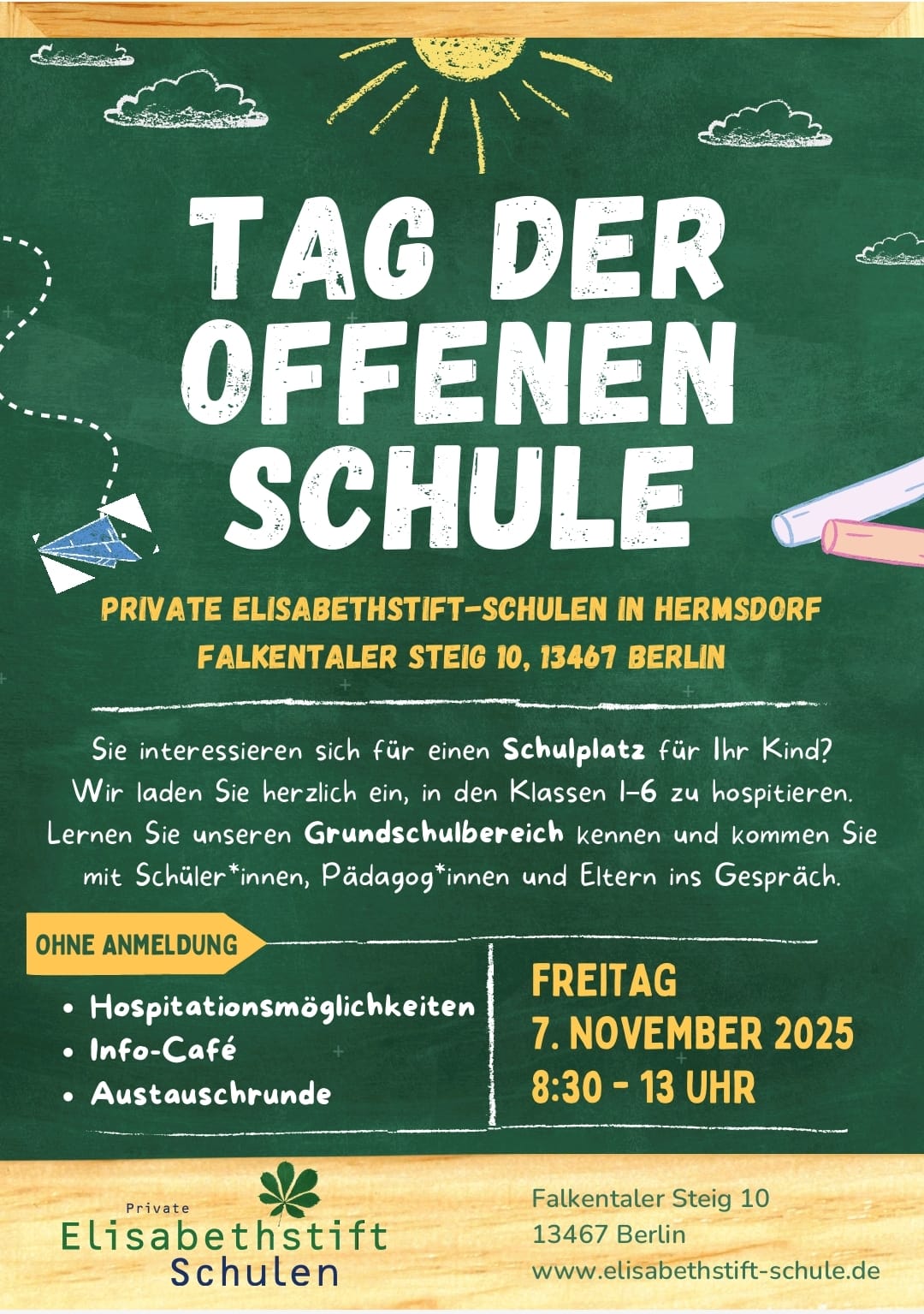 Wenn Sie mehr über die Elisabethstift-Schulen, das pädagogische Konzept, eine mögliche Anmeldung und die Rahmenbedingungen oder über die Ergänzenden Förderung und Betreuung (Hortbetreuung) erfahren wollen, nehmen Sie gern Kontakt mit uns auf..